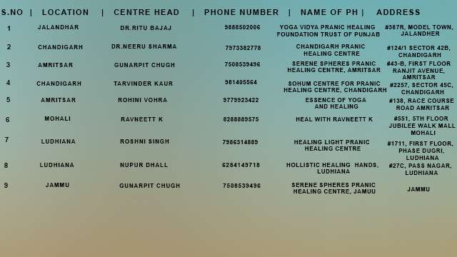 YOGA VIDYA PRANIC HEALING FOUNDATION TRUST OF PUNJAB- Monthly Pranic Healing Courses Schedule